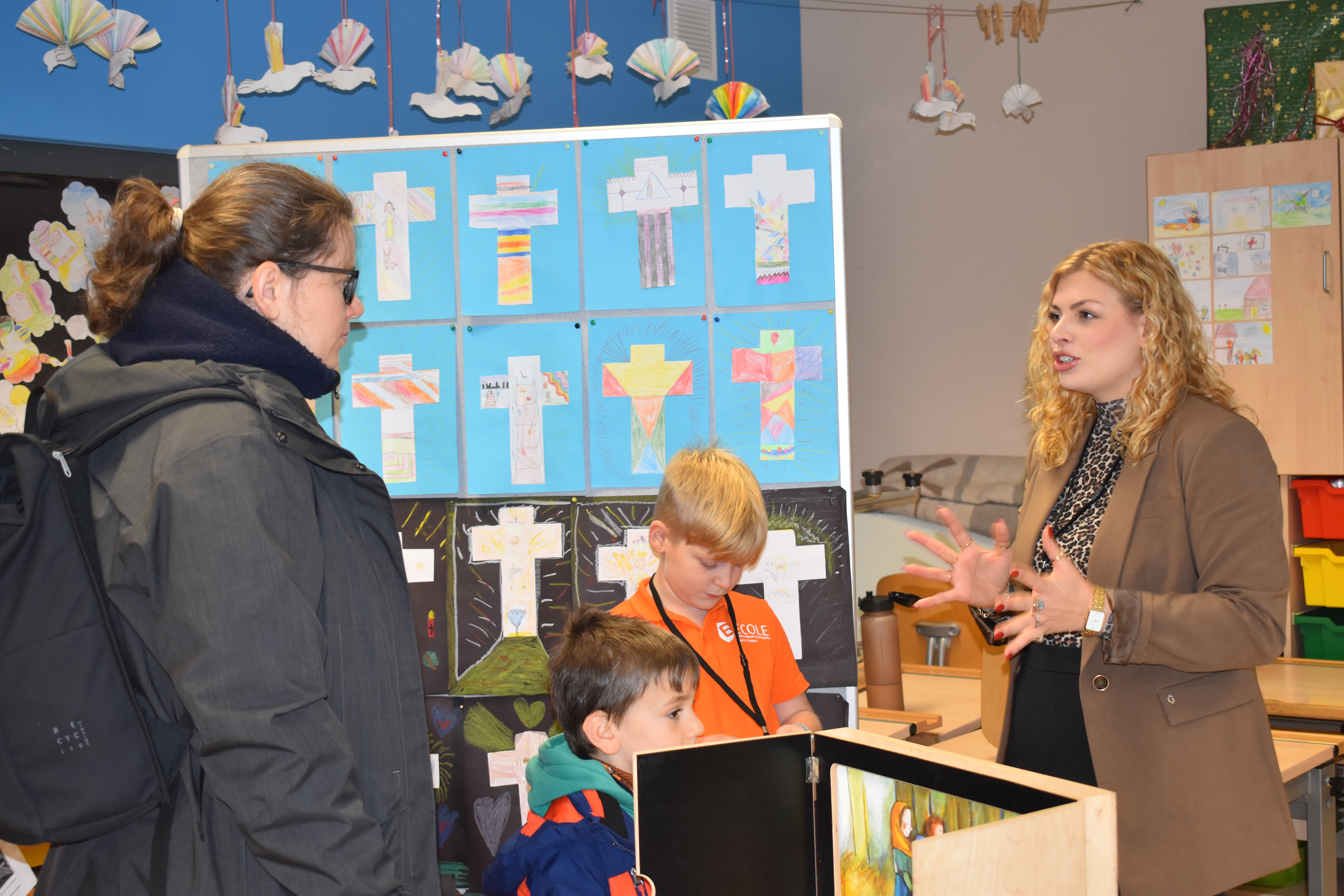 Am Tag der offenen Tür der Ecole-Grundschule nutzten viele Familien das Angebot, die Klassenräume und das Schulgelände zu besichtigen. Sowohl Eltern, deren Kinder an unserer Schule bereits lernen, als auch künftige Eltern erlebten die Lernatmosphäre und auch das kulturelle Miteinander unserer Schule. Durch die Begleitung von mehr als 50 Schülerlotsen konnten alle Fragen aus Kindersicht zum Lernalltag unserer Schule beantwortet werden. Für die Erwachsenenfragen standen die Lehrkräfte zur Verfügung, die die Klassenräume zur Präsentation der Unterrichtsfächer nutzten. Ausgelegte Schülerarbeiten konnten dabei gleichzeitig mit besichtigt werden. Besonderen Anklang bei Kindern und Eltern fanden die Möglichkeiten zum Experimentieren, der französische Schau-Unterricht und die Filme über unsere Sprachreisen nach Frankreich. Im Hort konnten die pädagogischen Angebote aus dem Nachmittagsbereich erlebt werden. Auch hier stand das Pädagogen-Team für alle auftretenden Fragen bereit.