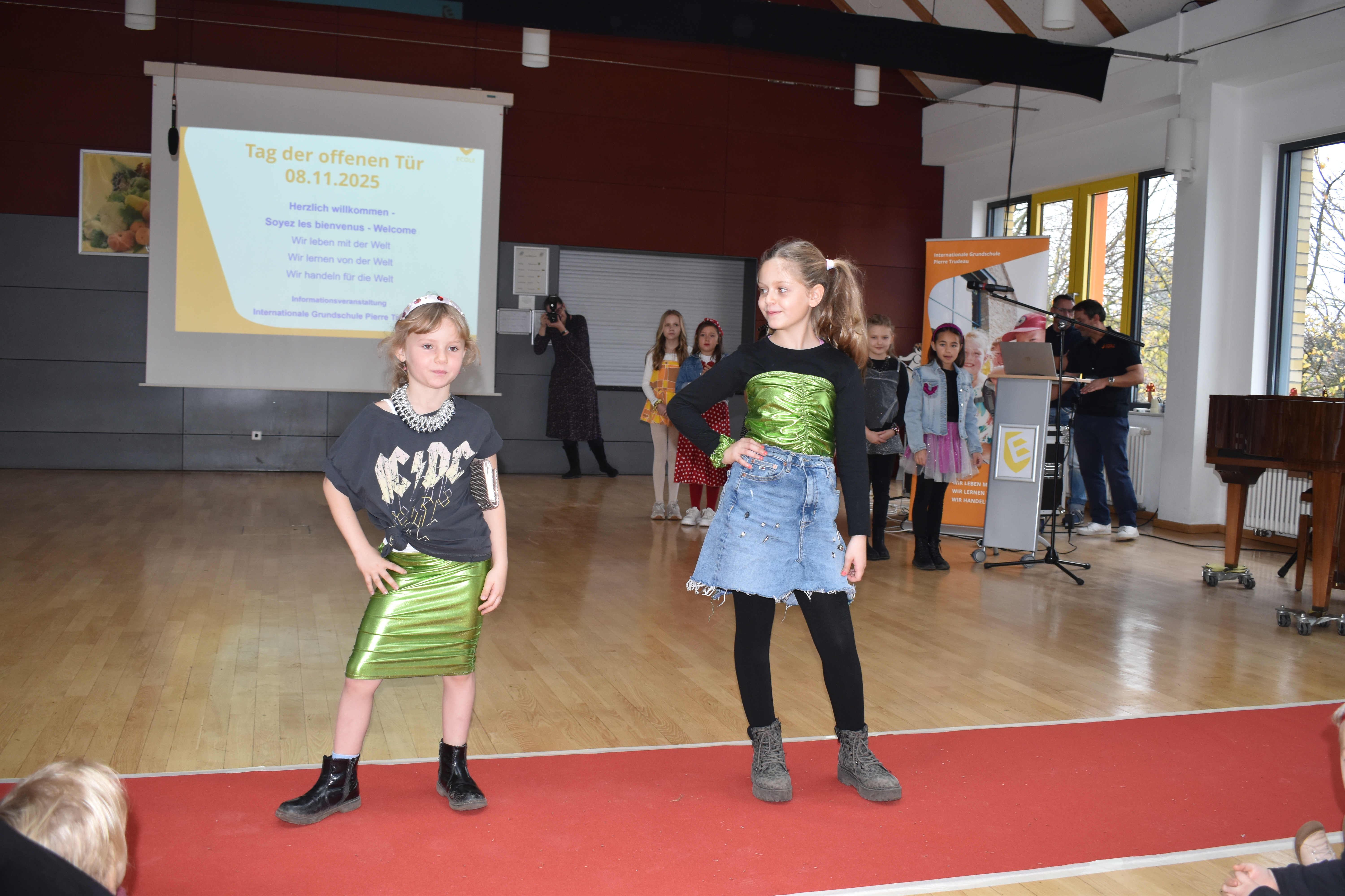 Unser neu aufgestellter Schulchor bewältigte seinen ersten Auftritt und ließ uns an seiner Musikalität teilhaben. Viele Kinder der 4. Klassen demonstrierten musikalisch ihre Kenntnisse aus dem Englischunterricht und mit der Wiederholung der grandiosen Modenschau aus der Projektwoche ließen wir nochmal die Erinnerung an unser 25jähriges Jubiläum aus dem September aufleben.