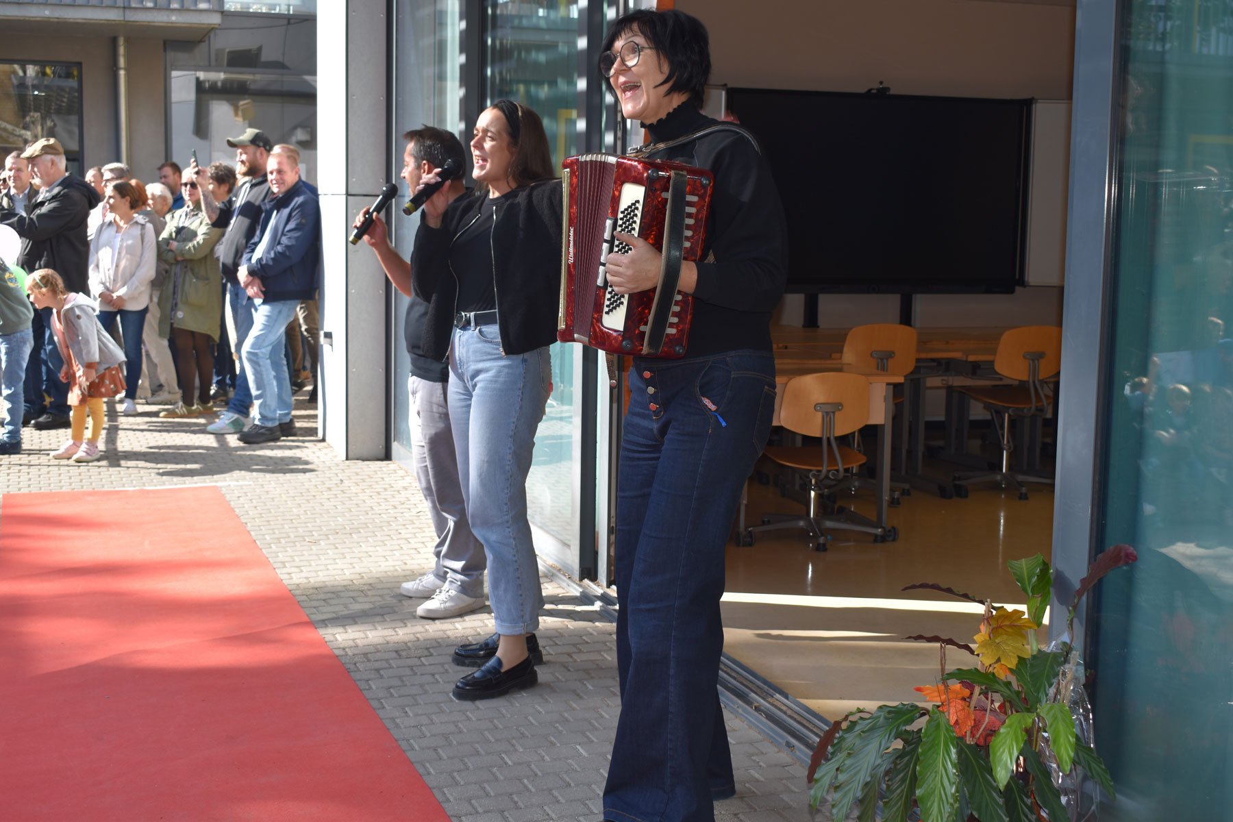 Zum Abschluss gab es unser traditionelles Treppensingen mit allen Schülern, Erziehern und Lehrern, sogar das Fernsehen war mit dabei. Das gemeinsame Singen war ein kleiner Gänsehautmoment.