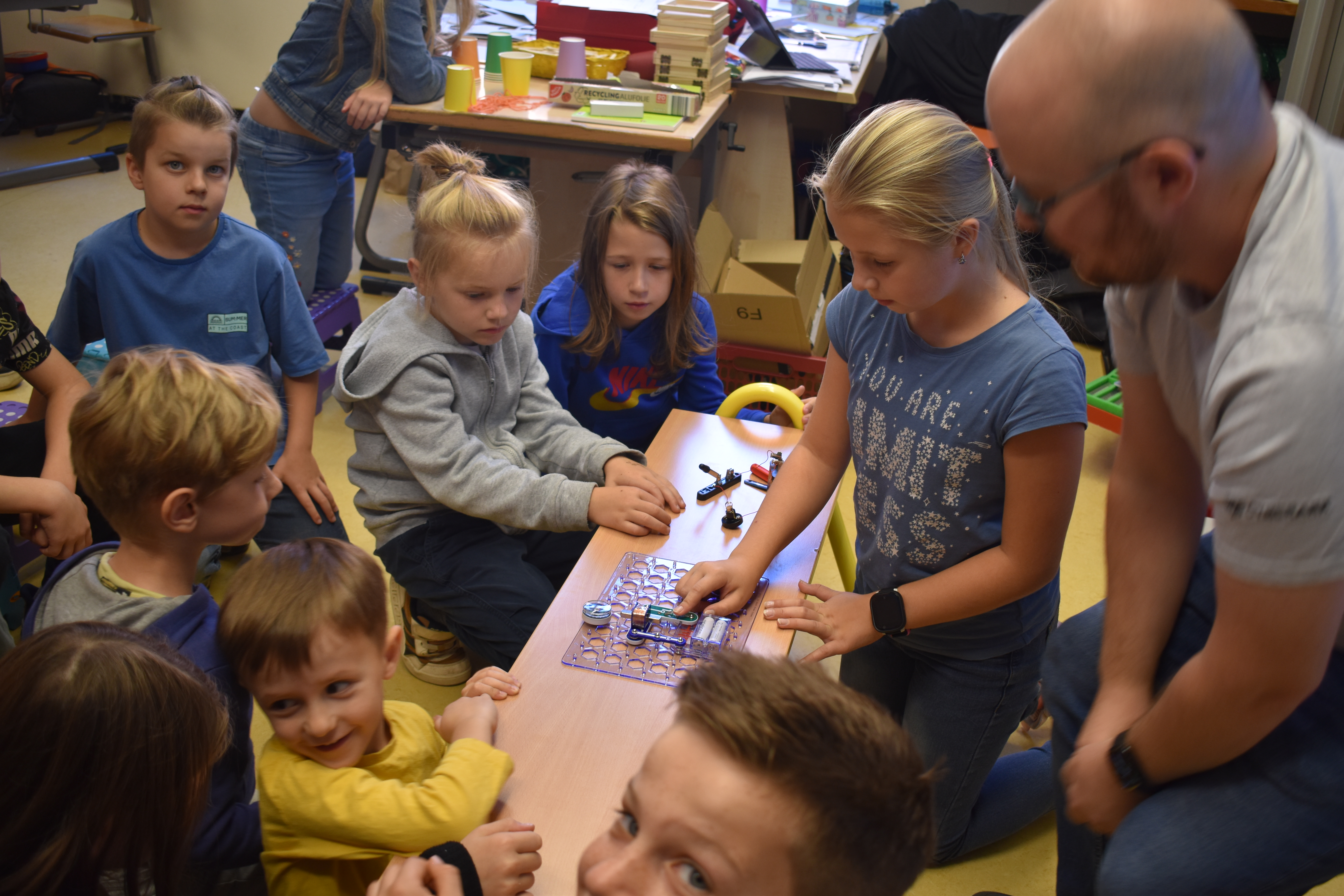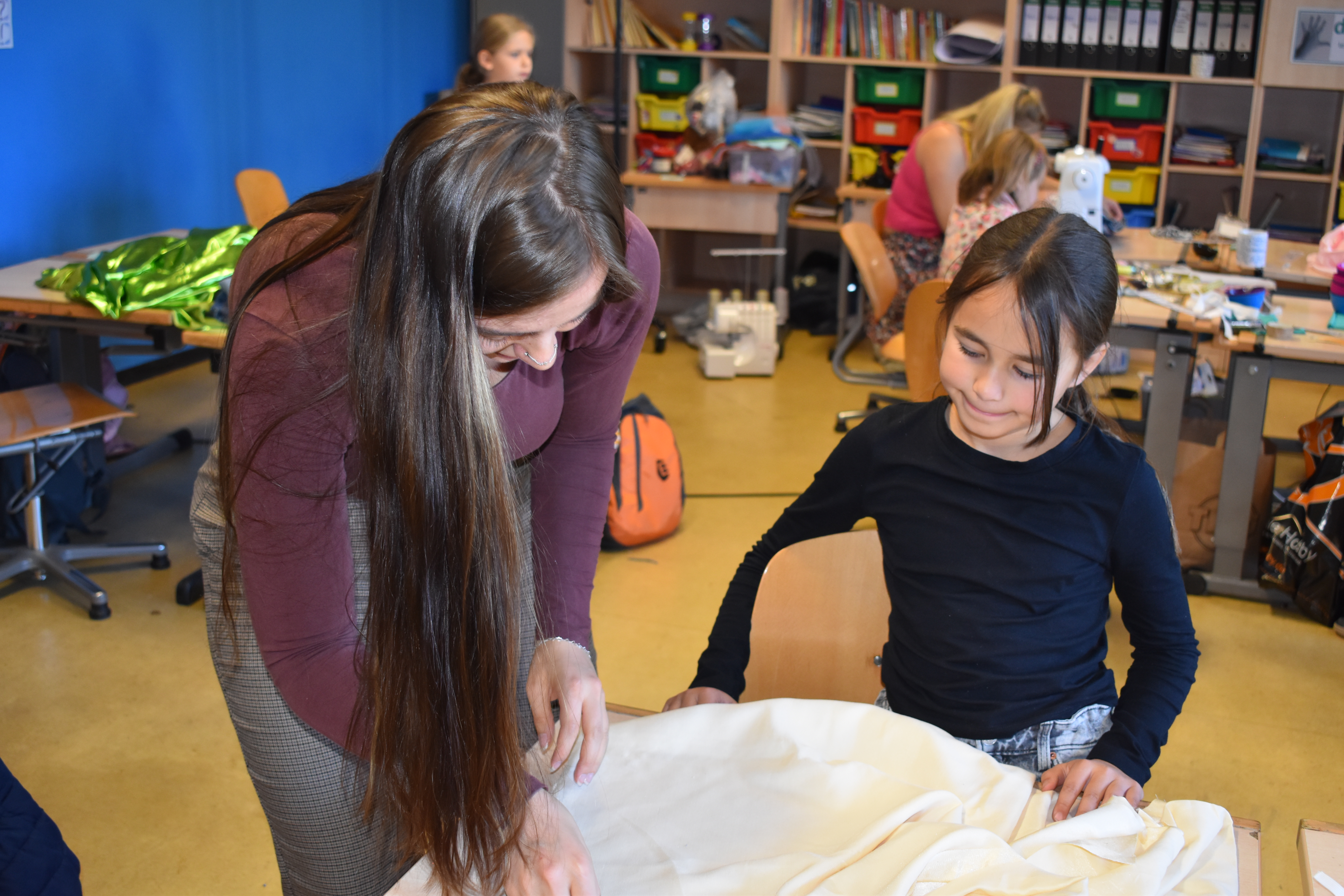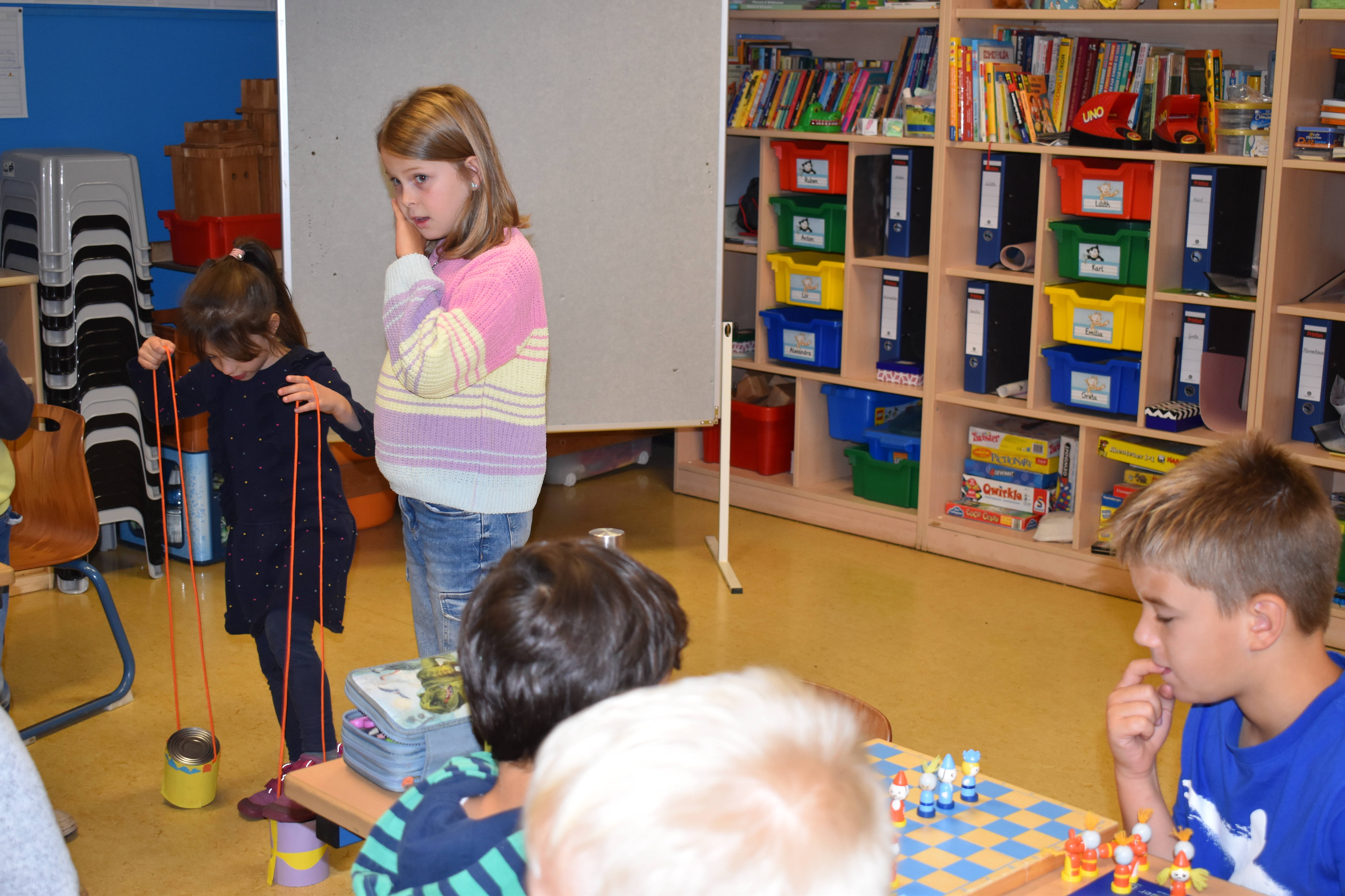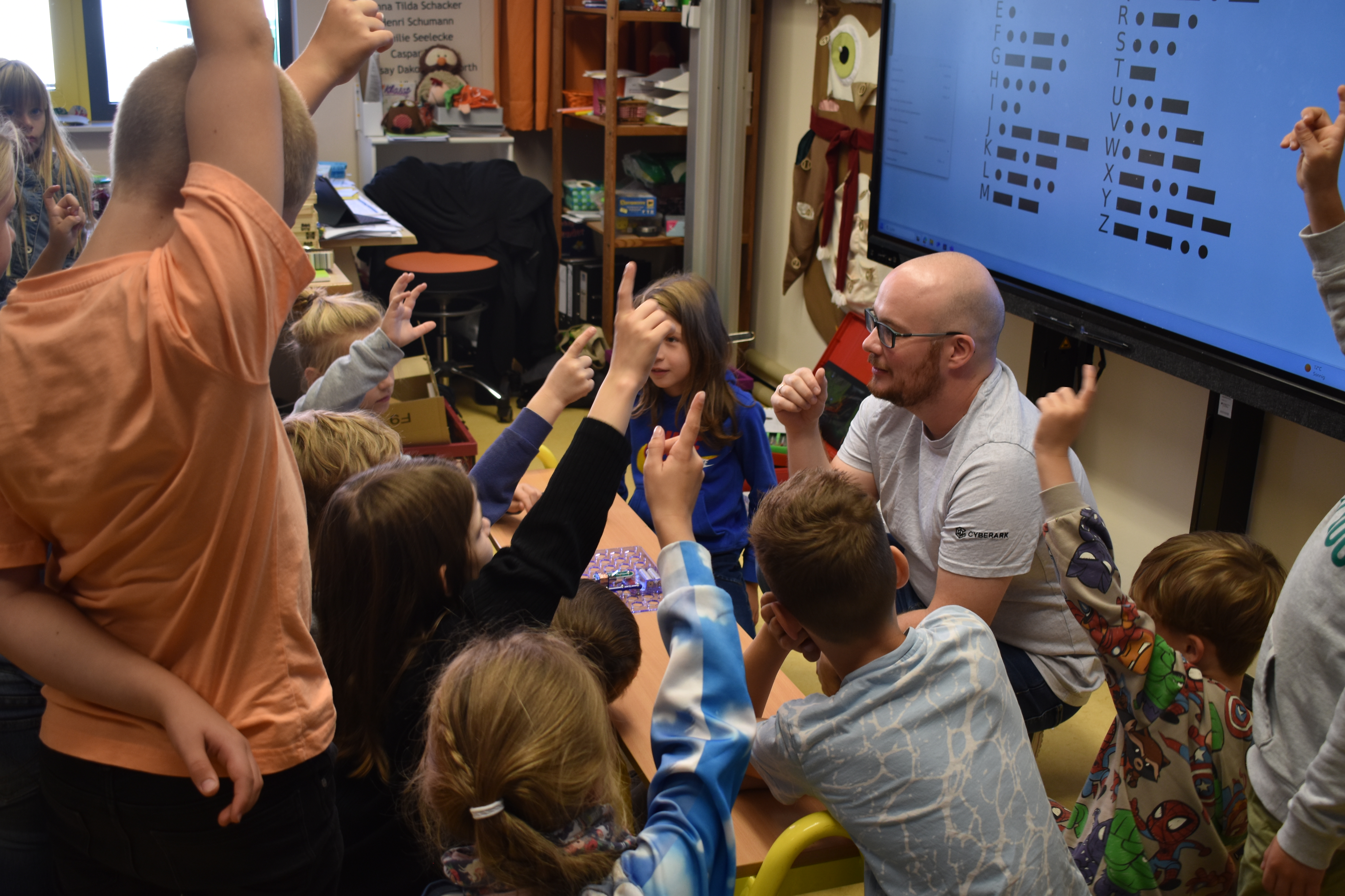 Während dieser vielfältigen außerschulischen Präsentationen standen die Kolleginnen und Kollegen der Grundschule für Fragen der Eltern bereit, erläuterten das Lerngeschehen, das Schulkonzept und gaben den künftigen Erstklässlern die Möglichkeiten, sich mit den Lernmaterialien auszuprobieren. Unsere Schülerlotsinnen und Schülerlotsen begleiteten die interessierten Familien und zeigten die Schule und das Lernen aus ihrer Sicht.