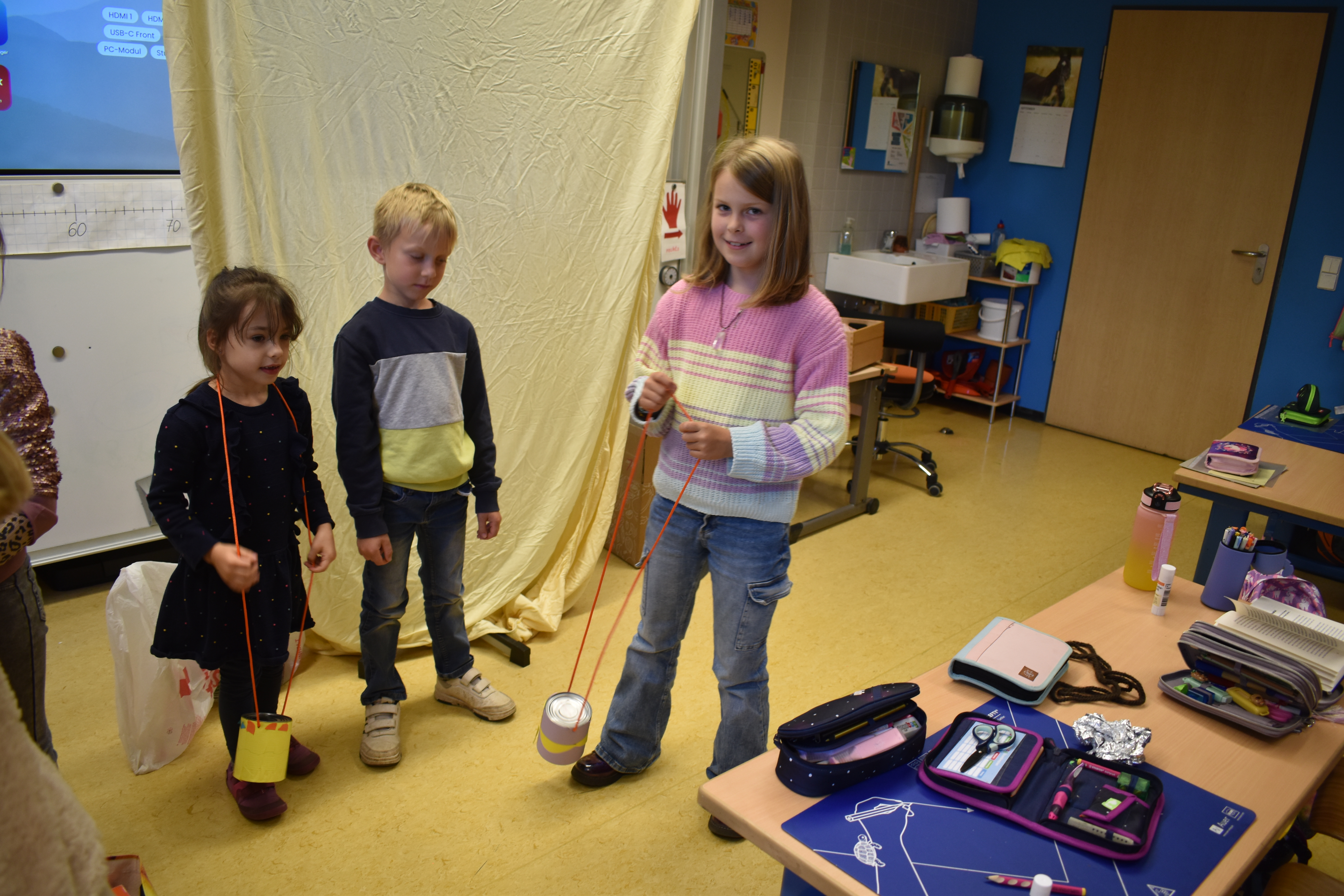 Die Klasse 1a hat in einem fächerübergreifenden Projekt Futterglocken selbst hergestellt. Mit viel Eifer haben die Kinder Stöcker gesammelt, das Futter gemischt und angerührt, die Tontöpfe damit befüllt sowie nach dem Trocknen einen geeigneten Platz dafür ausgesucht und unter Anleitung aufgehängt. Parallel dazu wurden Vögel aus Papier gebastelt.