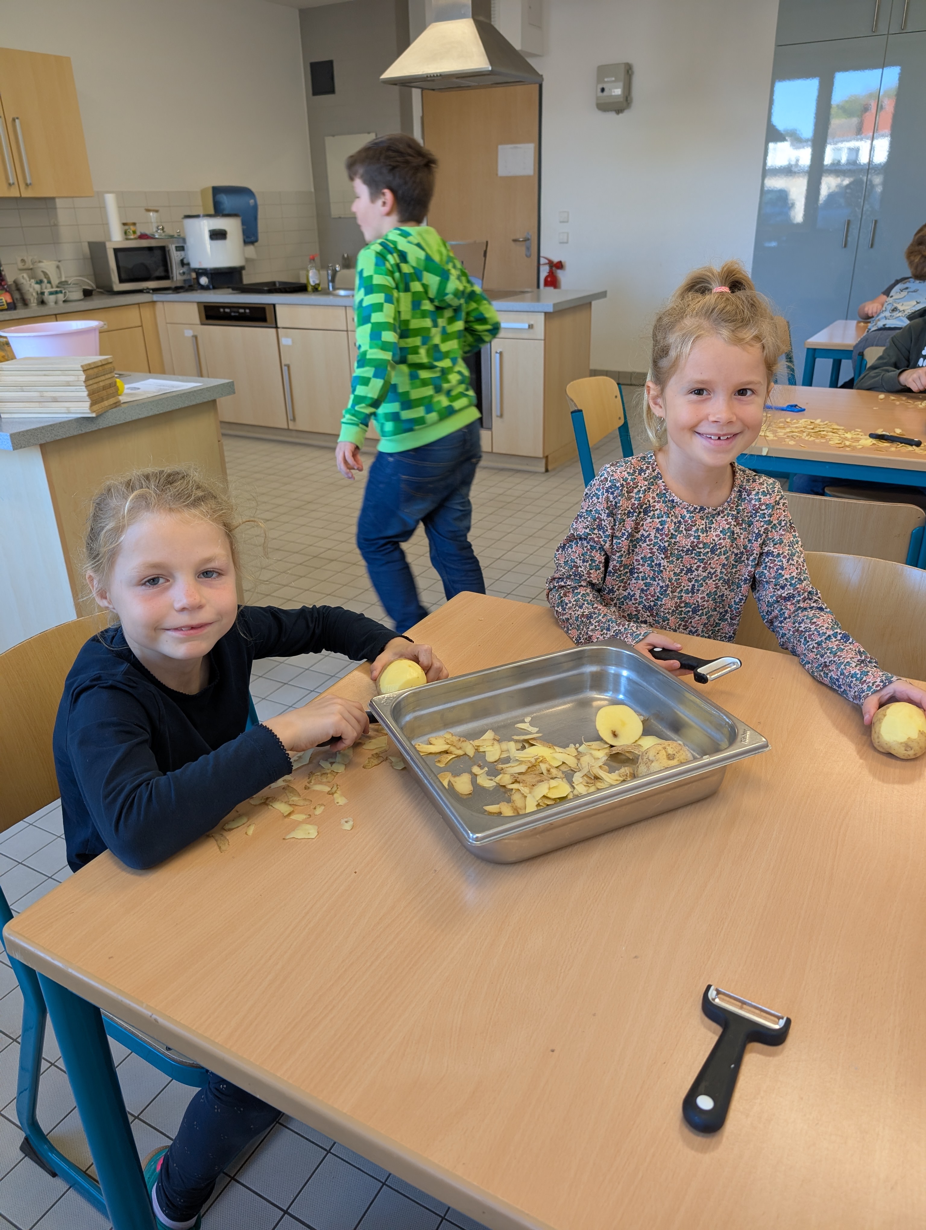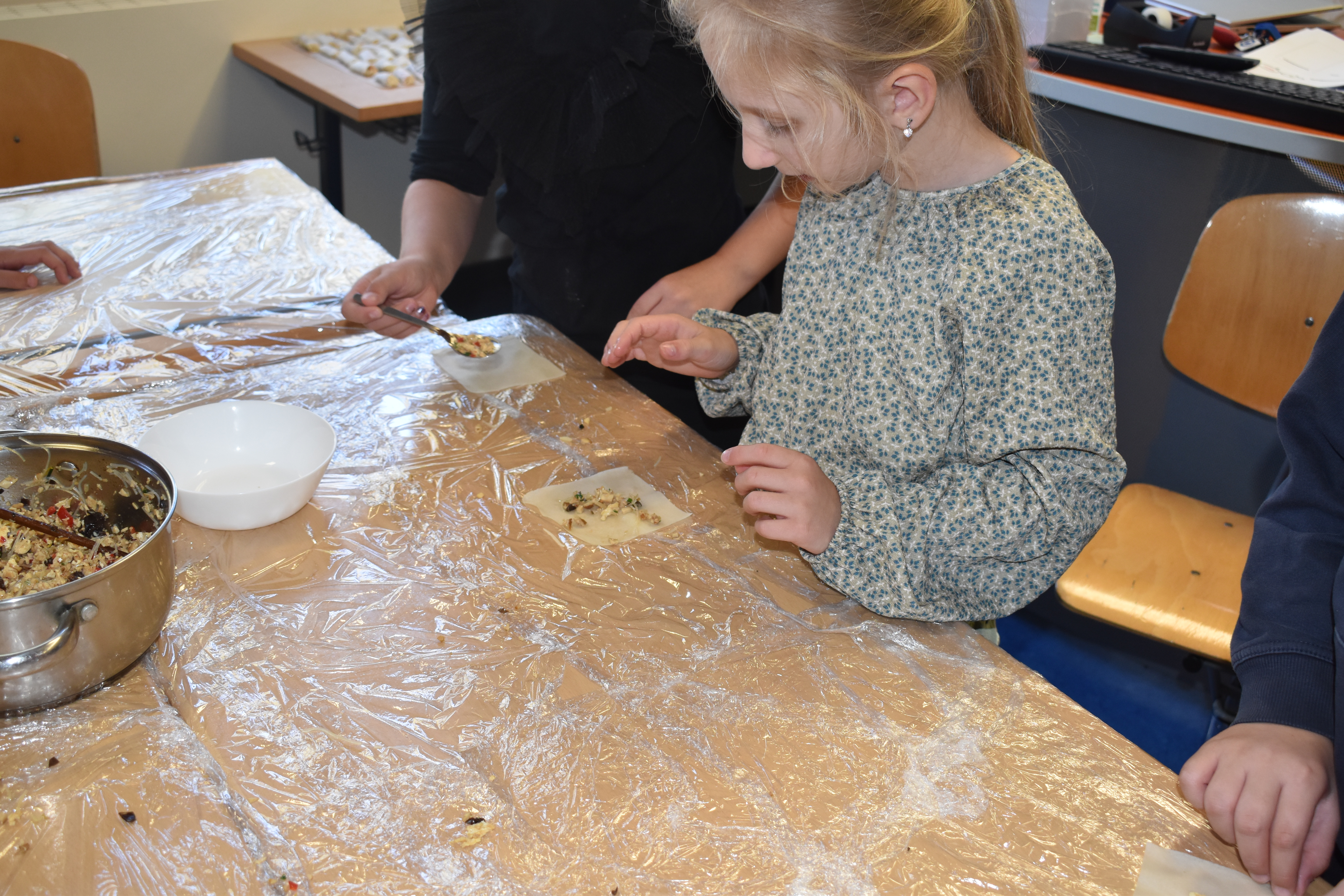 Ein besonderes Highlight: Die Kinder verwandelten Kochlöffel in kleine „Omas“ – mit Schürze, Brille und viel Fantasie. Beim gemeinsamen Einkaufen wurde nicht nur über Zutaten gesprochen, sondern auch über Werte wie Nachhaltigkeit und Gemeinschaft.