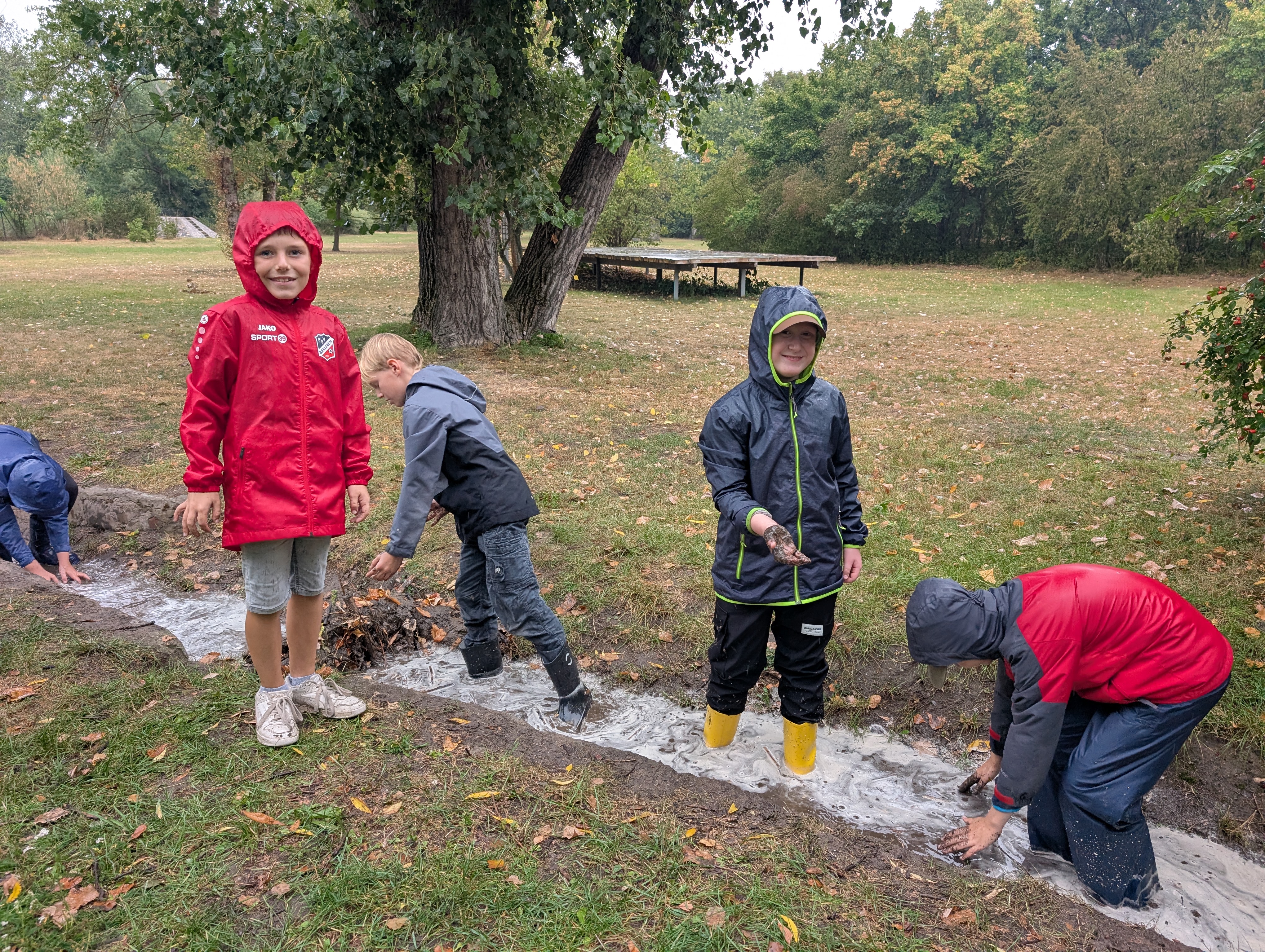 Trotz grauem Himmel und Dauerregen ließ sich die Klasse 3c den Ausflug in den Elbauenpark nicht vermiesen. Mit viel Energie und guter Laune wurden Biberdämme gebaut, Pfützen durchquert und die Natur erkundet. Regen von oben und Schlamm von unten, aber mit strahlenden Gesichtern – ein Tag voller Abenteuer, Teamgeist und Spaß!