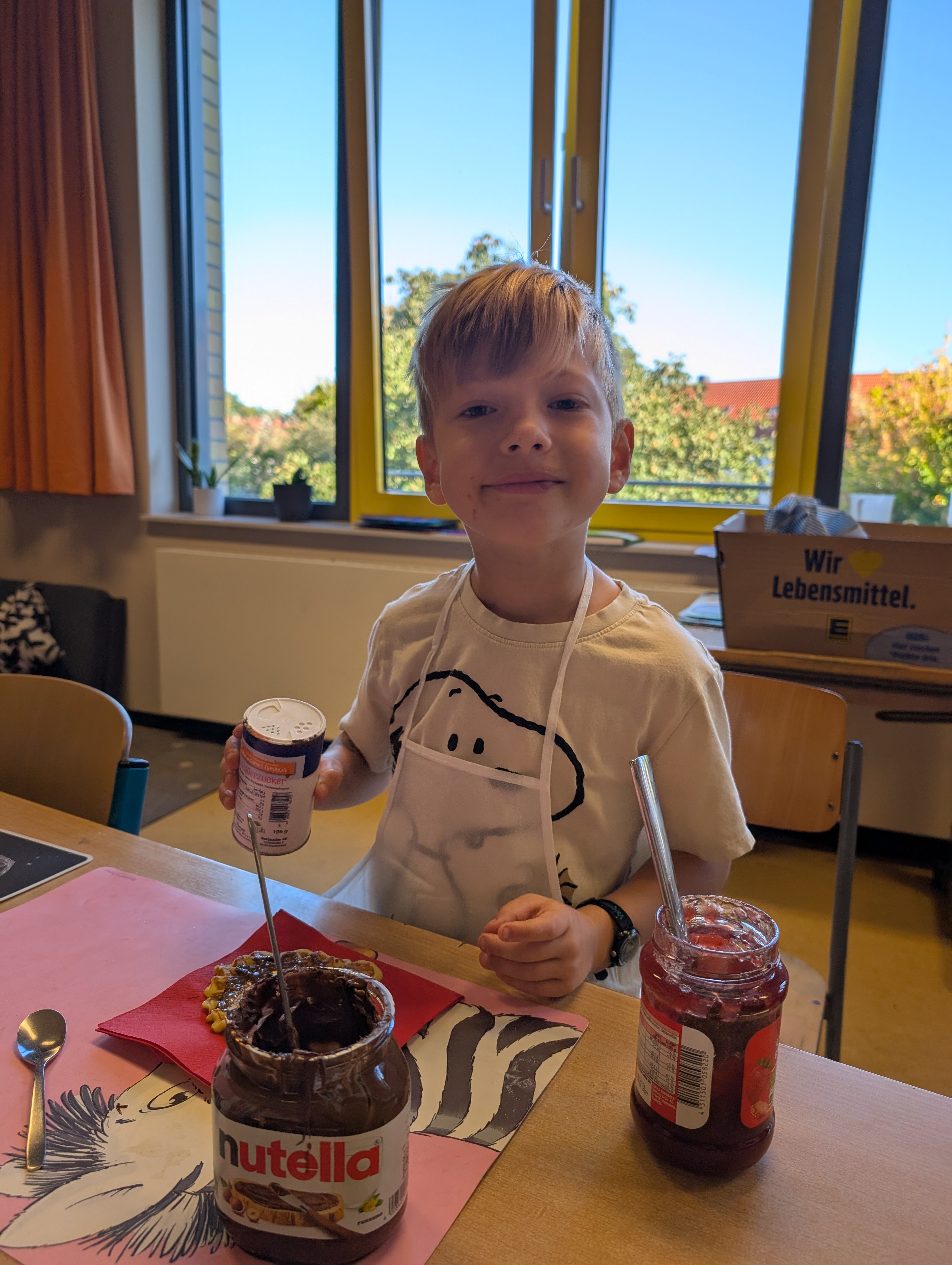 In einer fröhlichen Atmosphäre feierte unsere Grundschule heute den Deutsch-Französischen Tag, eine Tradition, die die enge Freundschaft zwischen Deutschland und Frankreich zelebriert. Die Schülerinnen und Schüler kamen zusammen, um gemeinsame Zeit bei einem gemeinsamen Frühstück mit Baguette, Croissants und einer Vielzahl süßer Zutaten zu genießen.