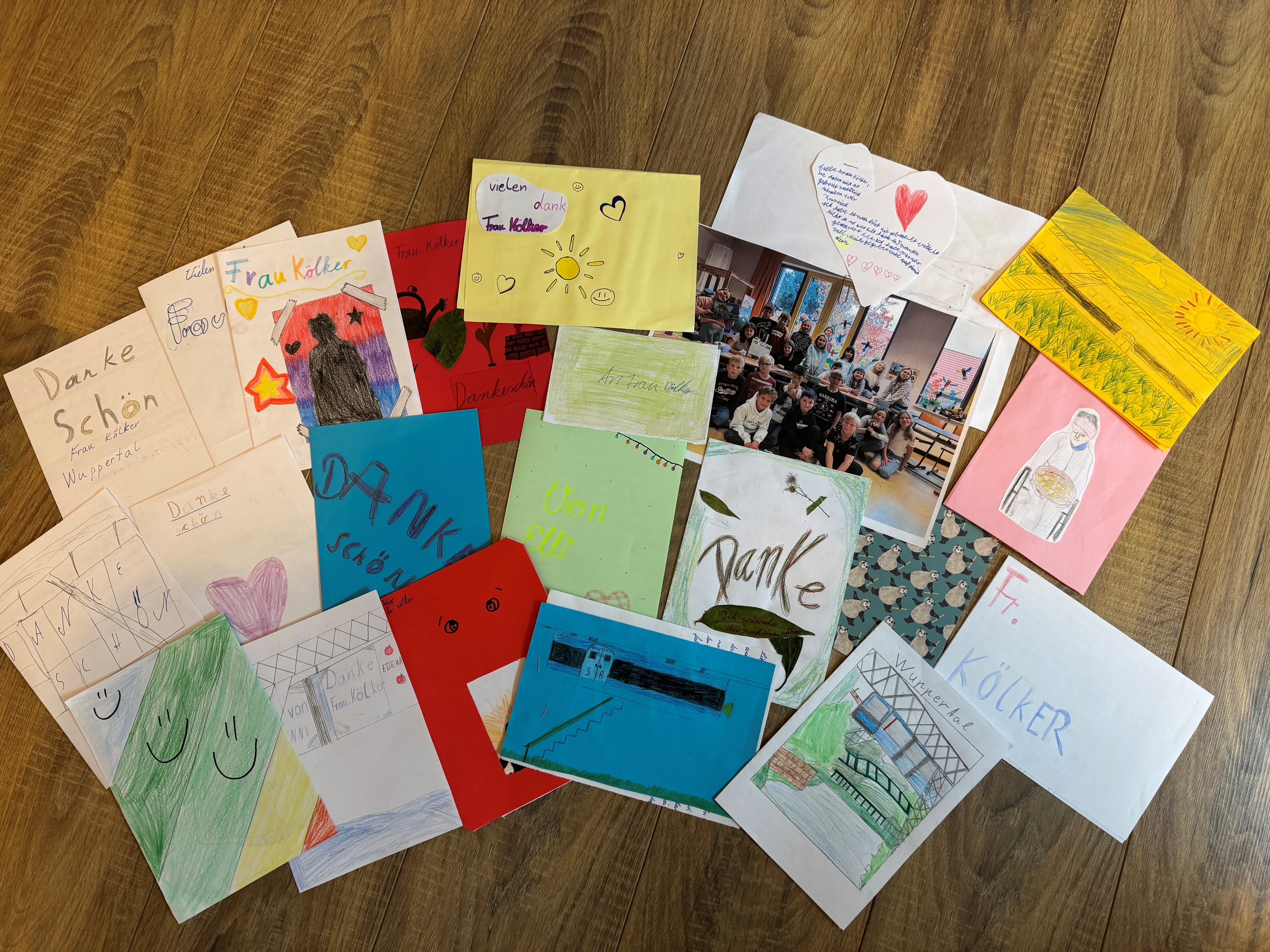 Die Klasse 4c hat an der Aktion „Post mit Herz“ teilgenommen und dabei vielen Senioren aus einem Pflegeheim in Wuppertal eine große Freude bereitet. Mit viel Liebe und Kreativität schrieben die Kinder persönliche Karten und gestalteten sie bunt und fröhlich, um den Bewohnerinnen und Bewohnern ein Lächeln zu schenken.