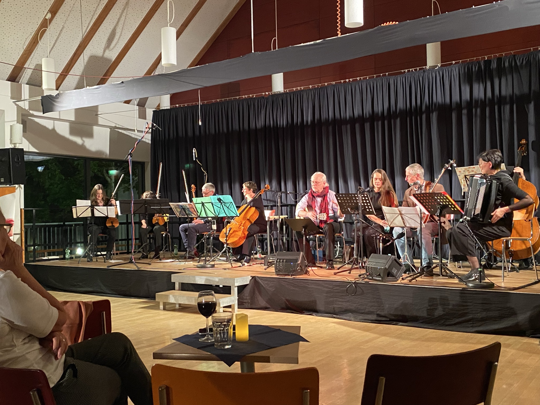 In stimmungsvoller Atmosphäre fand am 25.09.2025 der Weinabend zur Vorstellung unseres neu entwickelten Liederbuchs statt. Die Lehrer-Combo sorgte mit schwungvollen und einfühlsamen Liedern für den musikalischen Rahmen und zeigte dabei die Vielfalt des neuen Repertoires.
